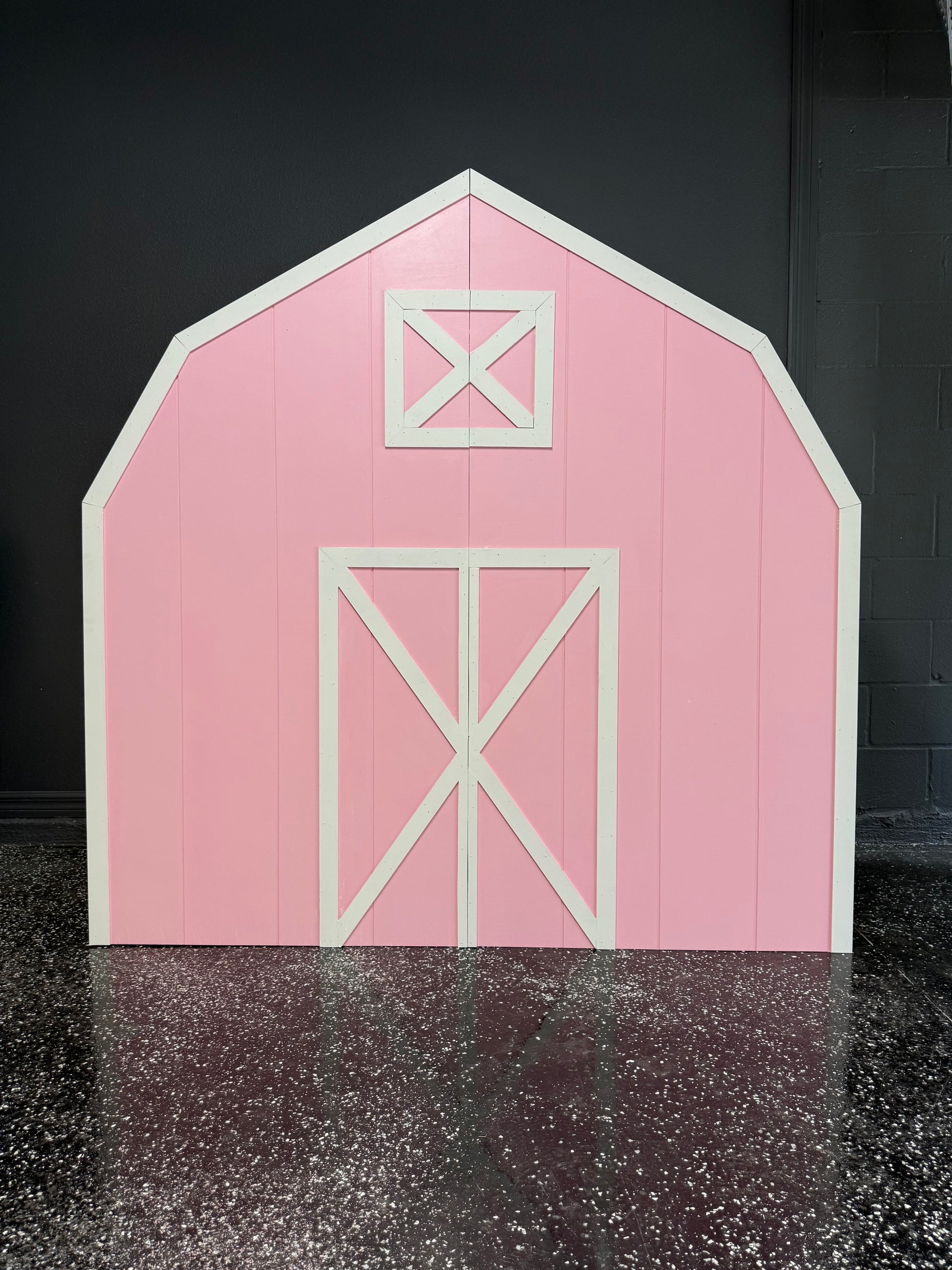 Bring rustic charm to your celebration with our handcrafted Barn Backdrop. Designed with classic barn doors and a window accent, this piece sets the stage for farm-themed birthdays, petting zoo parties, or country-style weddings.