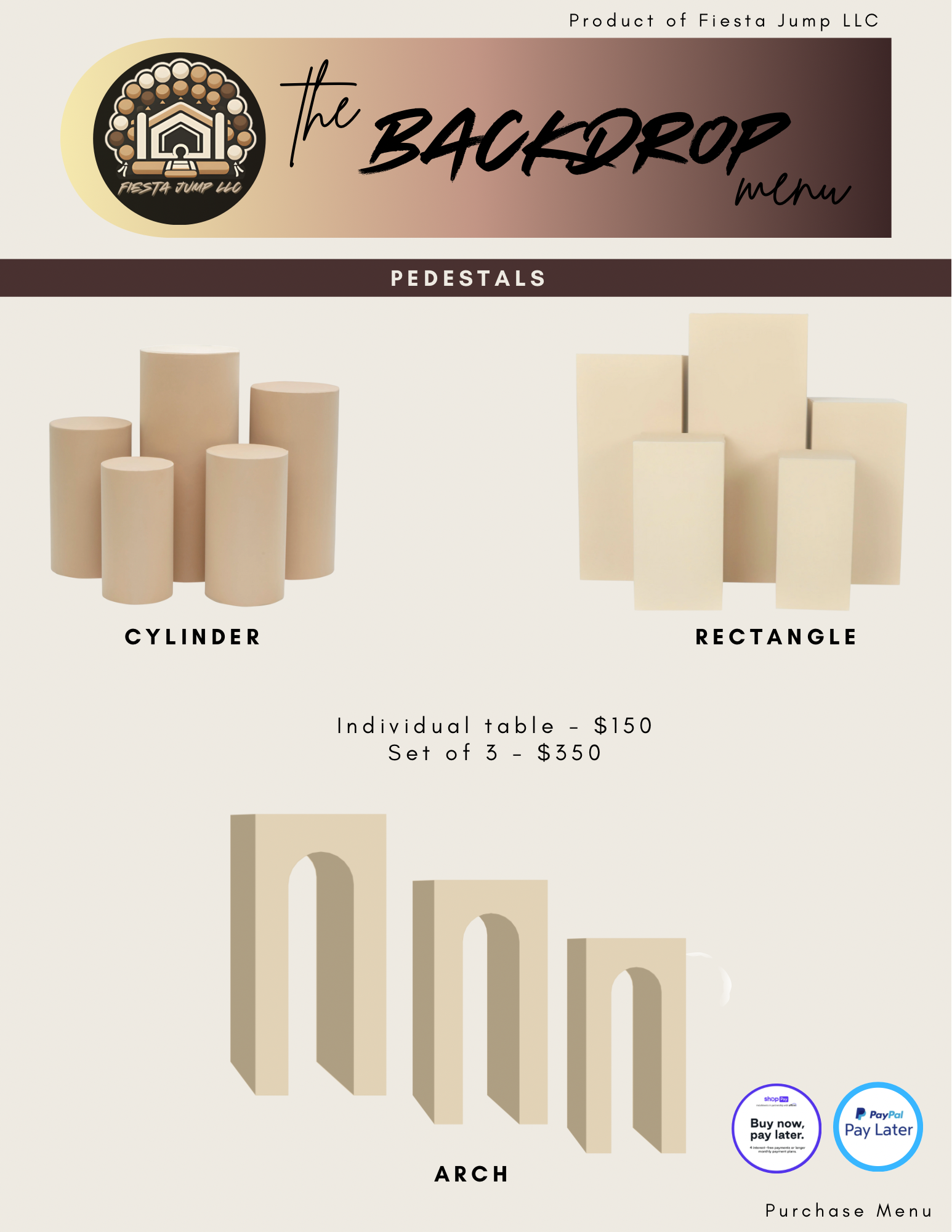 -Individual Pedestal: $150